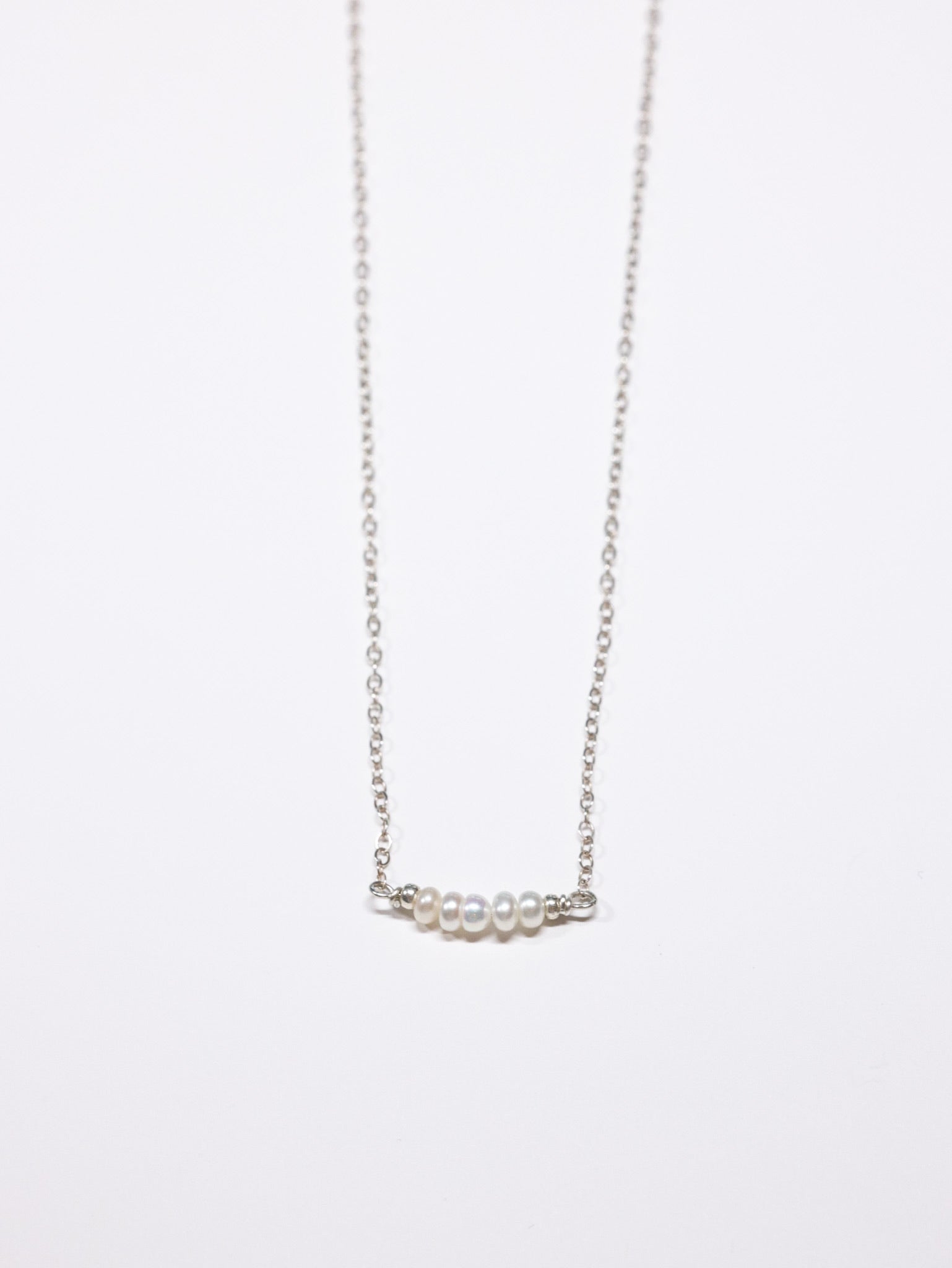 Unit price / perDelicate, timeless, and effortlessly layerable — the Whisper pearl nh necklace in sterling silver features five hand-selected tiny freshwater pearls spaced along a fine, nickel-free sterling chain. Its clean, minimalist design offers quiet beauty and everyday elegance.