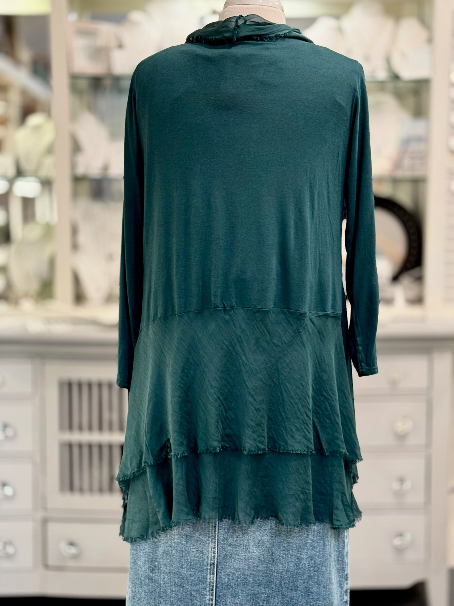 A timeless layer with effortless elegance, the Clara Silk Cardigan in peacock-green is crafted in Italy from luxurious, washable silk. Its lightweight drape and softly layered hem add movement and texture, while the open-front design makes it easy to layer over dresses, blouses, or tanks. Designed for versatility and year-round wear.