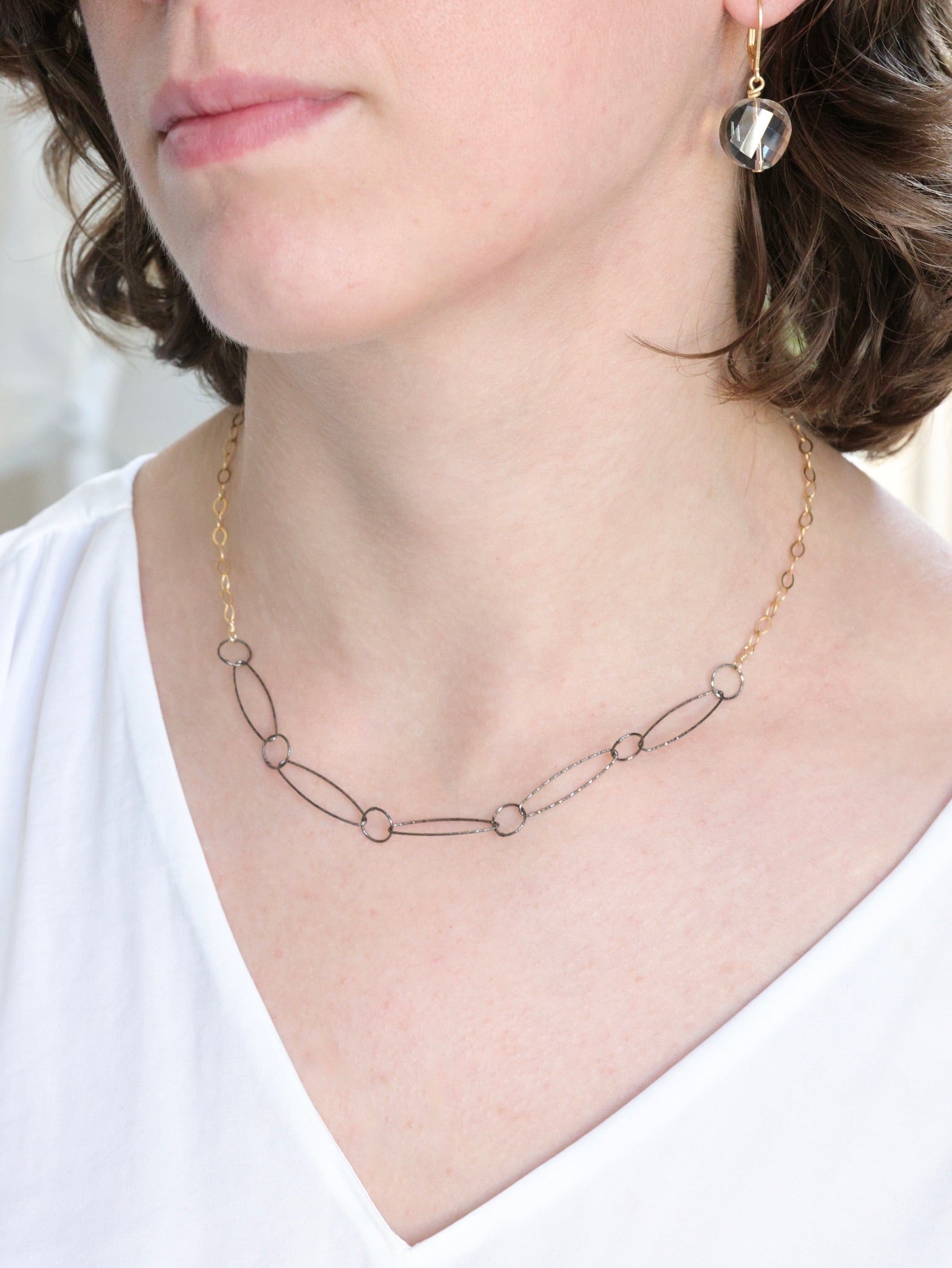 Easily layer this necklace or wear solo. Either way it will catch the light with the diamond cut links. Oxidized Sterling silver and Gold Filled