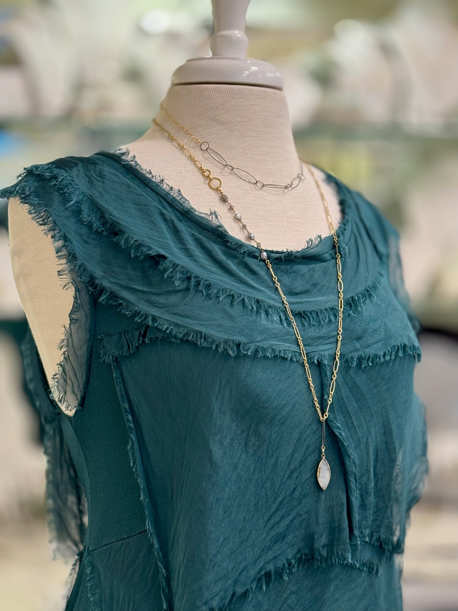 Stylist Tip: Layer this beautiful necklace with a longer gemstone necklace. We would recommend a larger gemstone necklace that can be worn 2 inches longer. This is also beautiful with a long necklace.