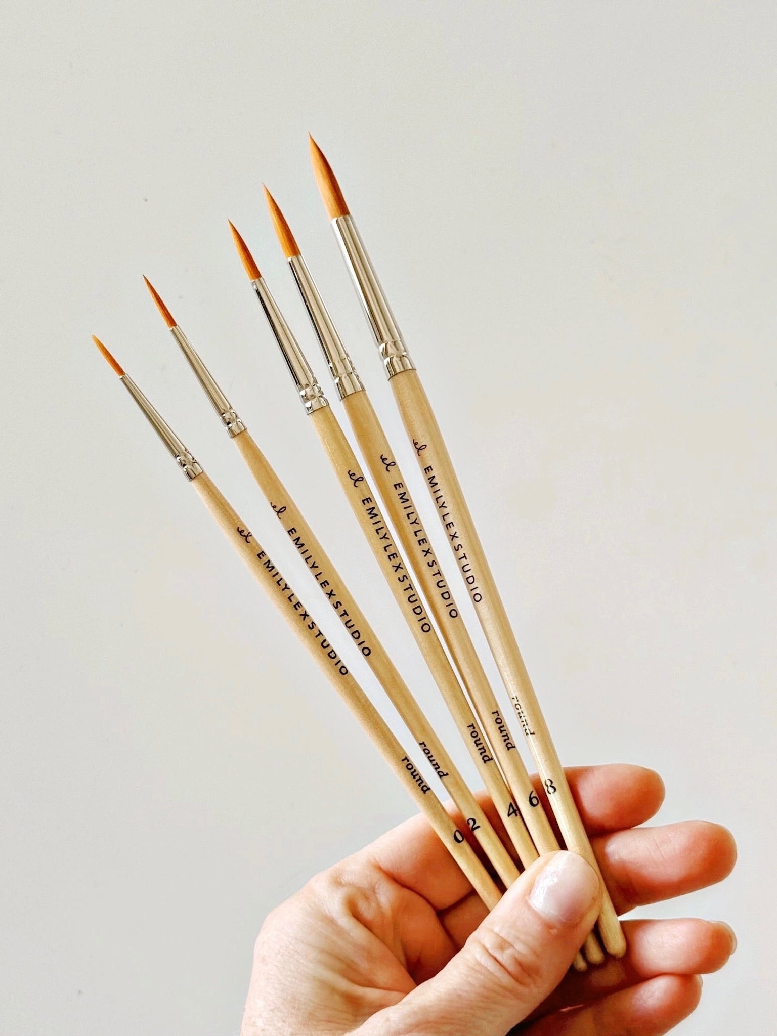 The perfect brushes for every watercolor artist. This five-piece set includes thoughtfully sized brushes for all your painting needs — from broad washes to the tiniest details. Sizes 8, 6, and 4 handle the heart of your artwork, while sizes 2 and 0 create delicate, precise strokes.