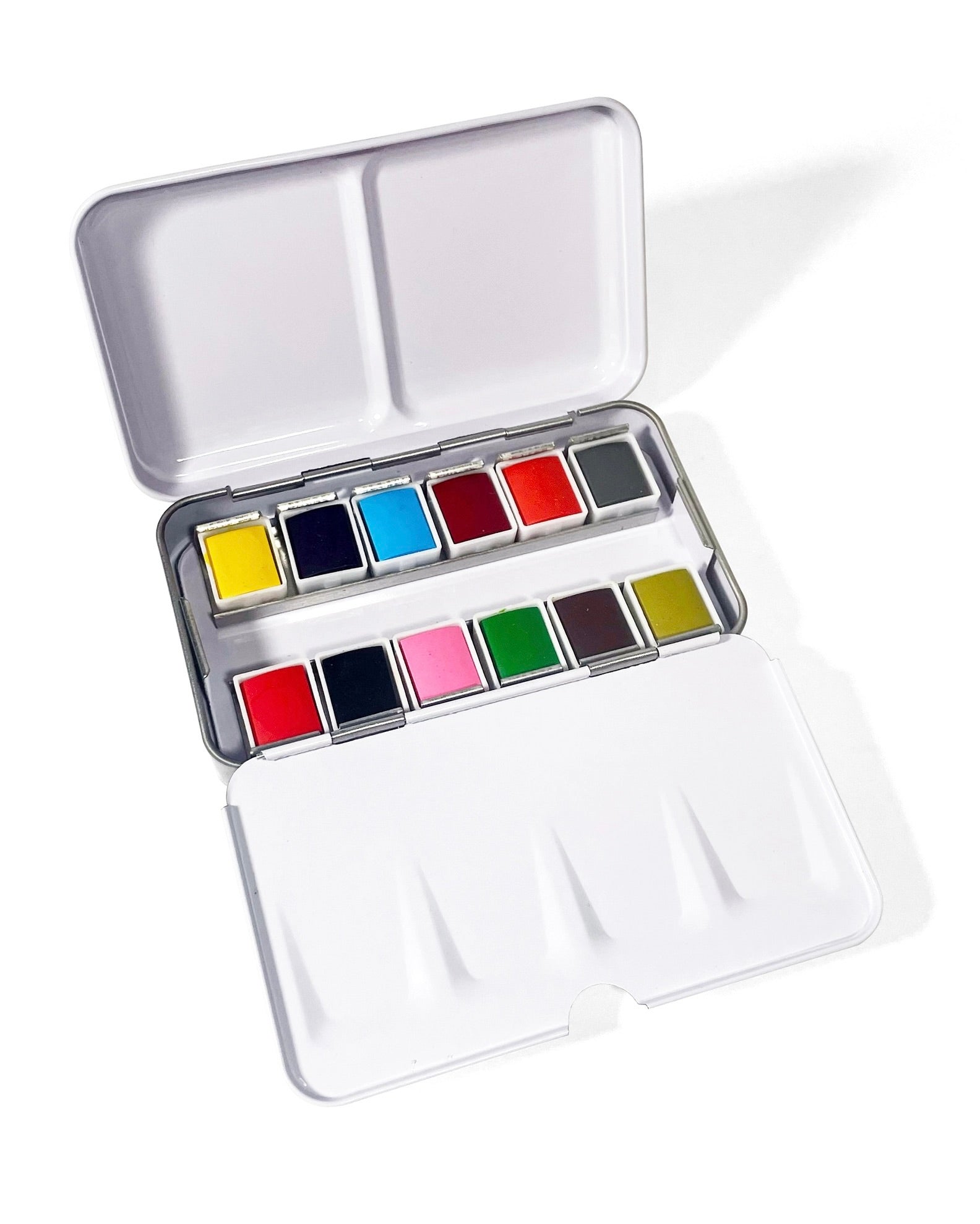 Unit price / perCreativity travels well with this compact 12 color watercolor paint set, designed for painting on the go and quiet moments of color wherever you land. Tucked inside an eco friendly aluminum case, it’s perfectly sized for travel or a quick creative reset at home.