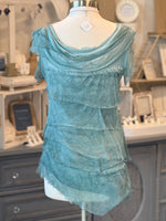 Add a touch of effortless elegance to your wardrobe with this soft, feminine ruffled top. Featuring delicate raw-edge layers and a flattering asymmetrical hem, this lightweight blouse drapes beautifully for a dreamy, boho-chic look. The wide neckline adds a graceful touch, making it perfect for casual outings, beach vacations, or layering with your favorite accessories. Pair it effortlessly with jeans, skirts, or linen pants for a relaxed yet stylish ensemble.