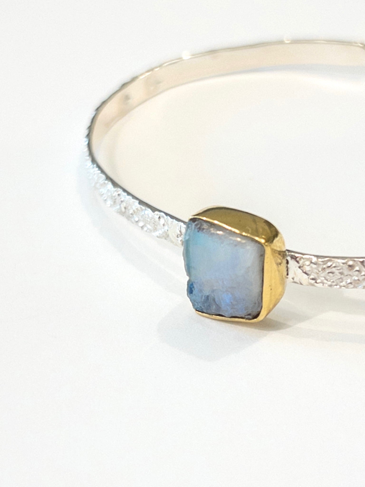 - The focal gemstone is a rough cut Moonstone