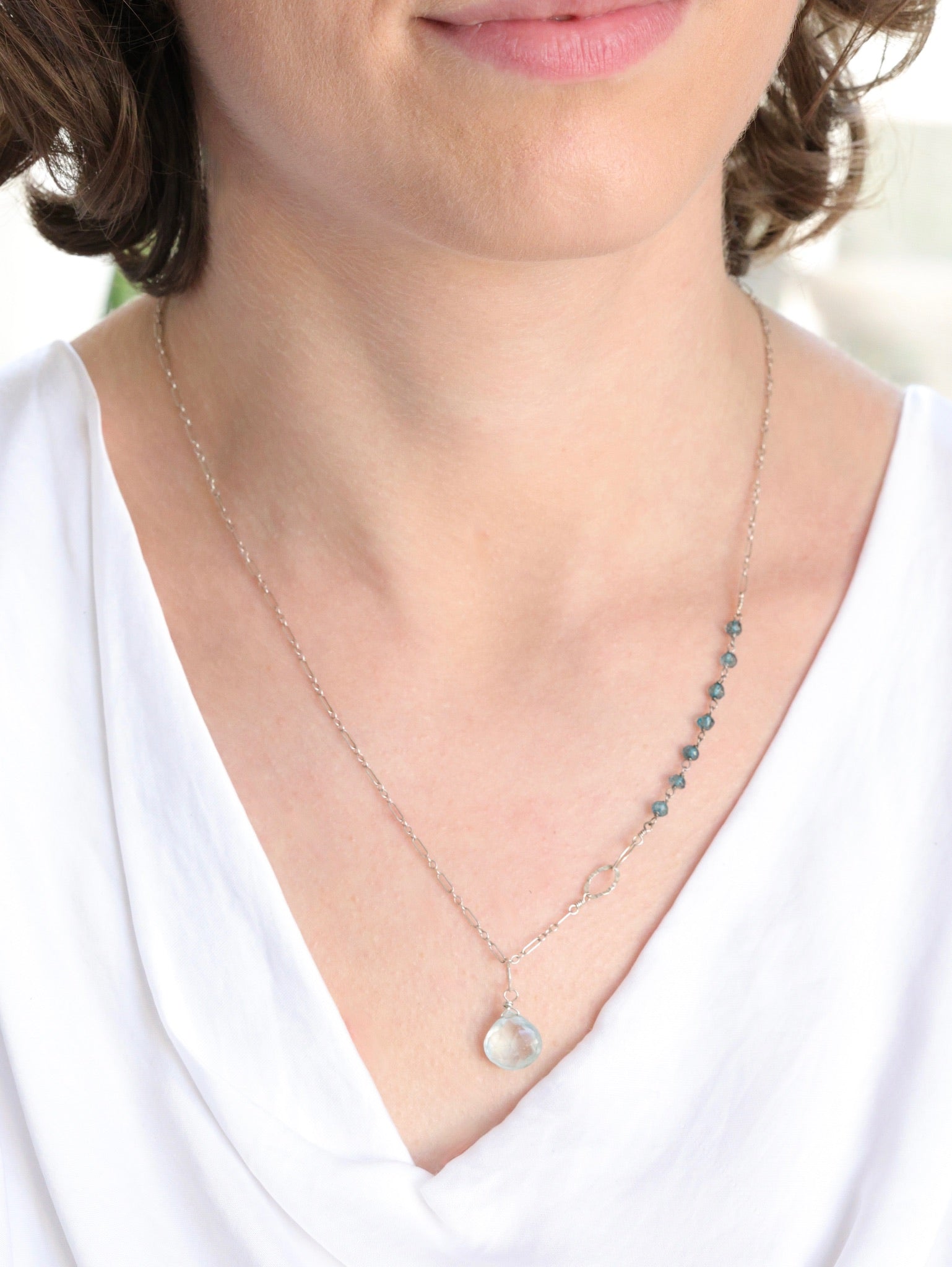This beautiful necklace is named after the beautiful lakes in Nisswa MN. 2 tones of beautiful blues come together with the London Blue Topaz and Aquamarine.