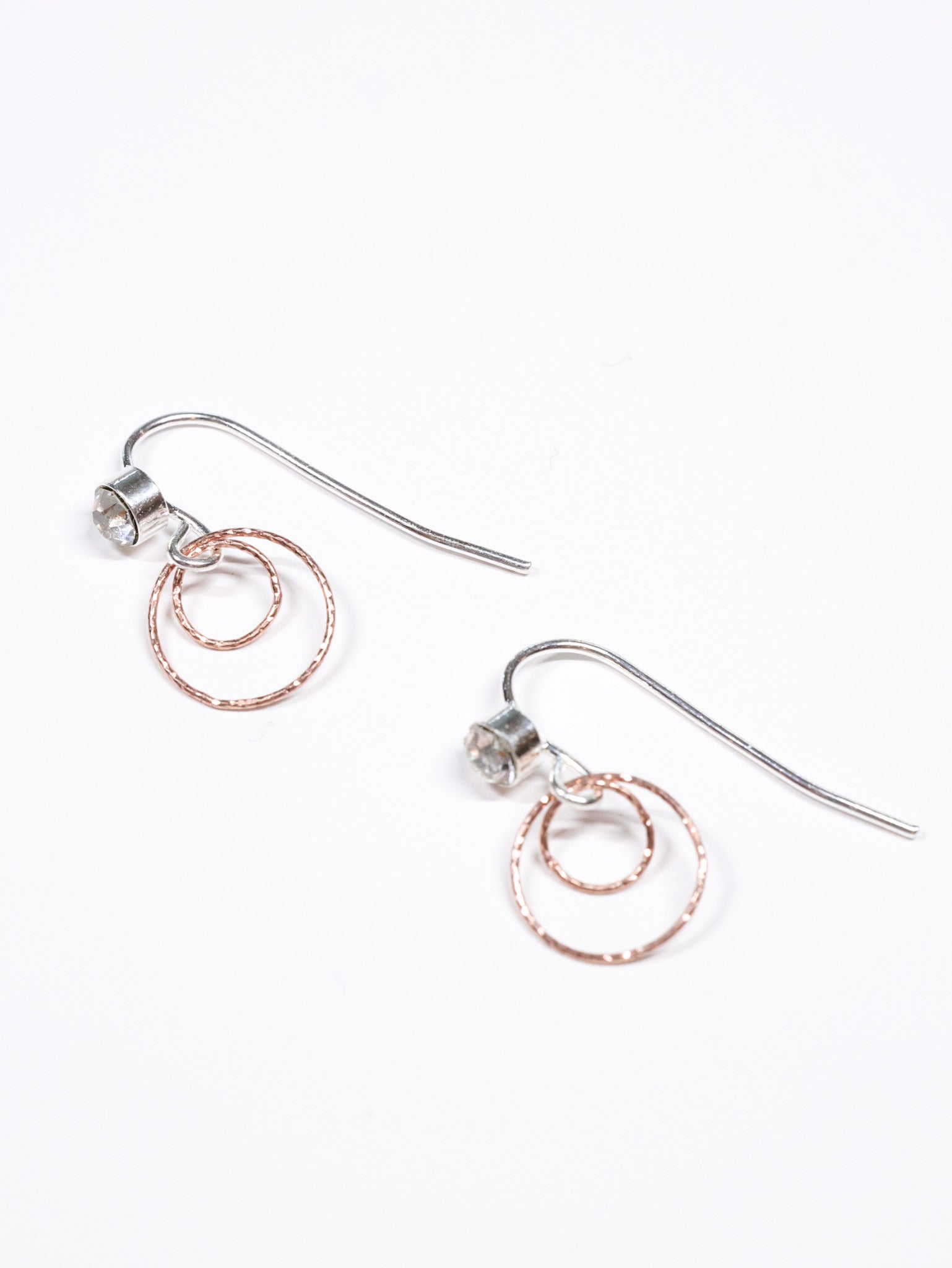 2 tone drop earrings that are perfect for daily wear. The crystal at the top adds a perfect amount of sparkle.