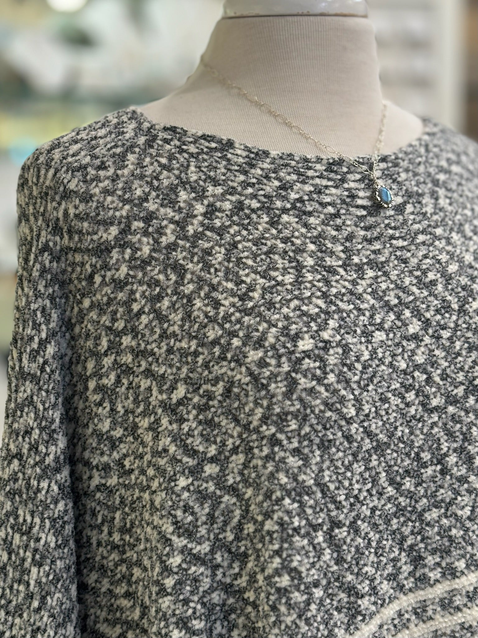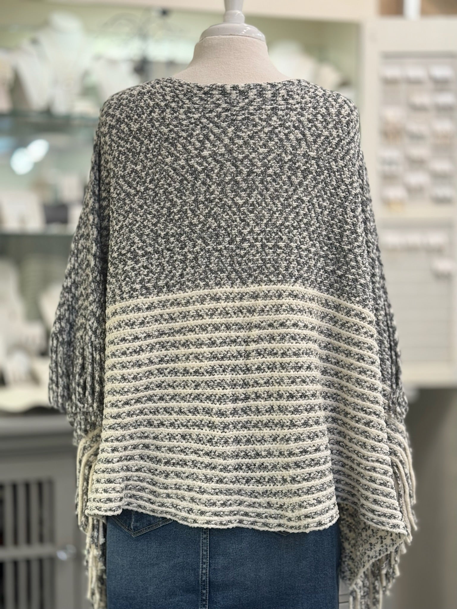 Effortlessly chic and endlessly cozy, the Paloma Poncho in Black is the perfect layer for cooler days. Crafted with a soft knit texture, this poncho drapes beautifully with an easy, relaxed fit. Subtle fringe detailing at the hem adds movement and charm, while the horizontal striping keeps the look modern and versatile.